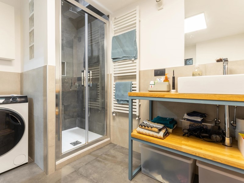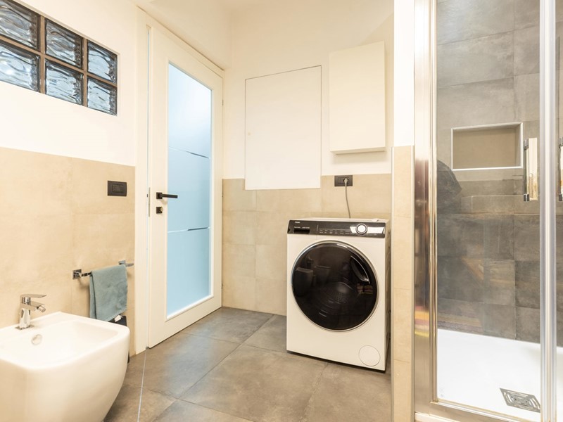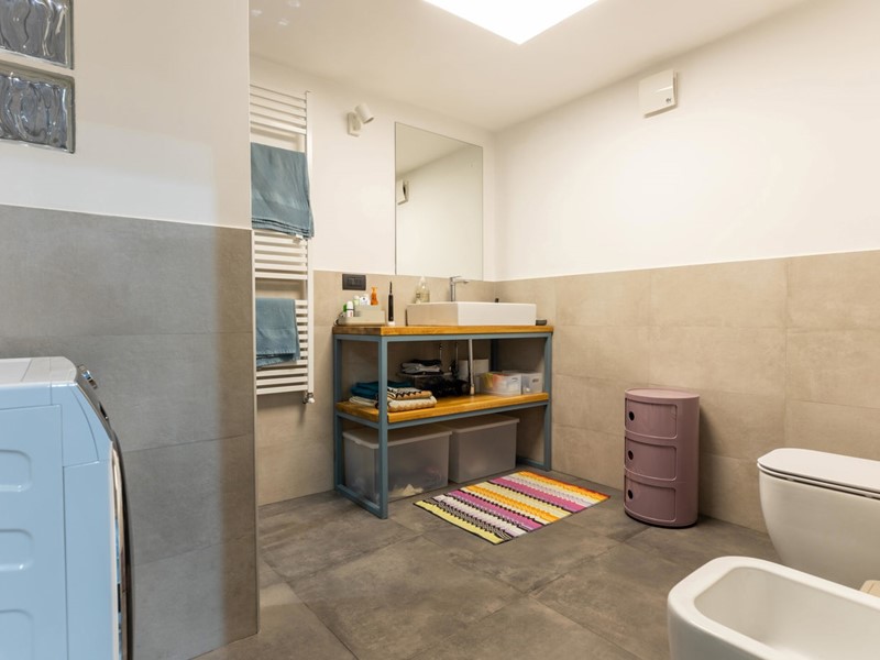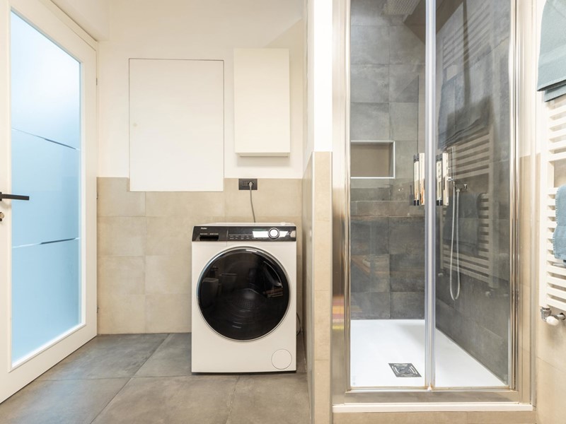 L'appartamento usufruisce di riscaldamento autonomo, pannelli solari centralizzati, termoarredo nell'ampio bagno, pale meccaniche al soffitto dell'open space, luci d'emergenza, infissi automatizzati in legno doppiovetro e portoncino blindato.