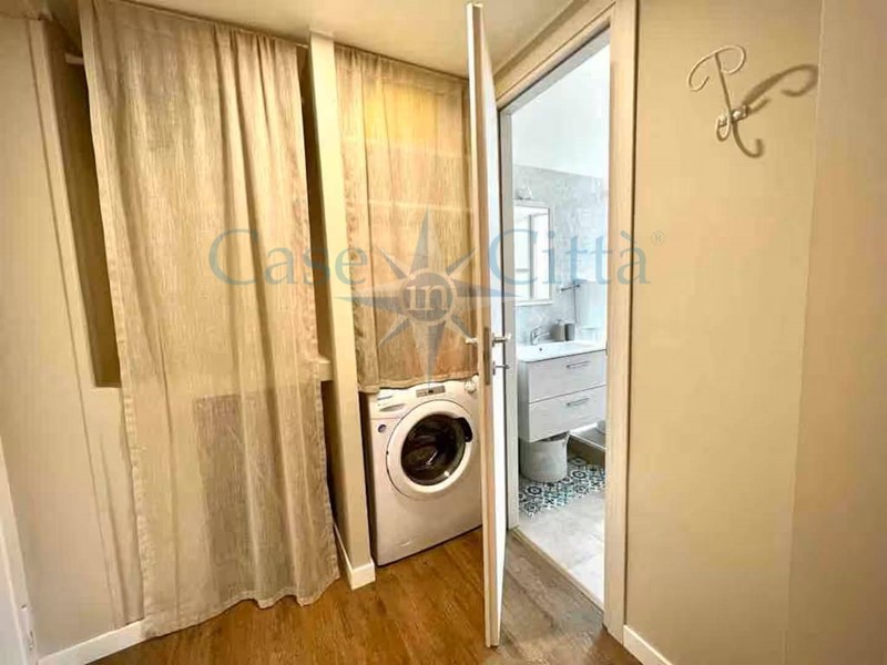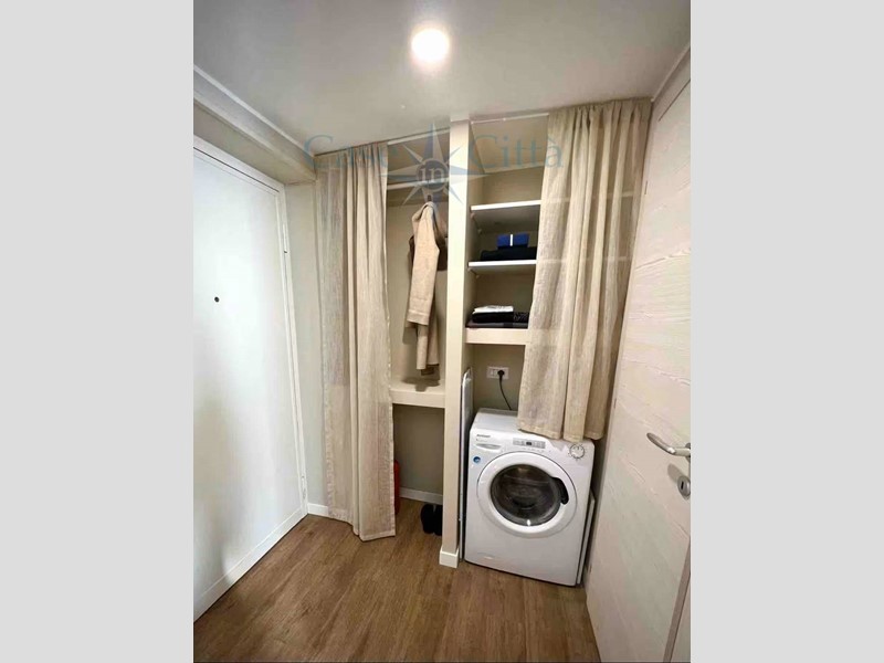 Cucina attrezzata con lavastoviglie, zona lavanderia separata con lavatrice e bagno moderno.