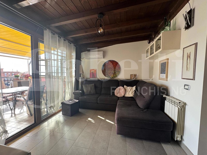 L'ingresso apre su una zona giorno accogliente e ben distribuita, suddivisa tra area pranzo e zona conversazione, con accesso diretto a una terrazza abitabile: uno spazio ideale per momenti di relax per godersi un po' di tranquillità. Un comodo disimpegno, arricchito da un soppalco, conduce alla zona notte composta da una camera matrimoniale con bagno interno, due ulteriori camere e un secondo bagno finestrato con vasca.