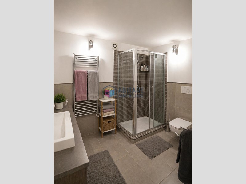 L’immobile si sviluppa su due livelli ed è così composto: un’ampia zona giorno con cucina a vista, antibagno, bagno e ampio ripostiglio, il tutto in ottime rifiniture. Attraverso una comoda scala passiamo al piano seminterrato dove troviamo una zona lavanderia ampia con cabina armadio, un altro bagno ampio e altre due stanze attualmente adibite a camera matrimoniale con finestra e altra zona armadi