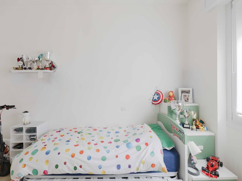 Quello che colpisce immediatamente, entrando dalla porta blindata, è l'illuminazione naturale che ci accompagna in tutte le ore del giorno, grazie alla doppia esposizione e al piano alto. Un balcone molto utile in cucina e un terrazzino ci fanno poi godere lo spazio esterno nei mesi più caldi e nelle ore più soleggiate.