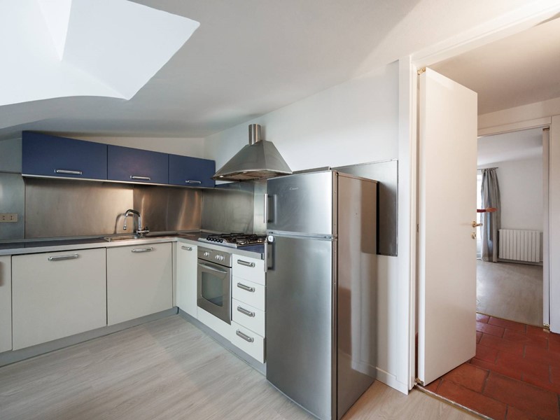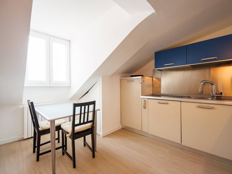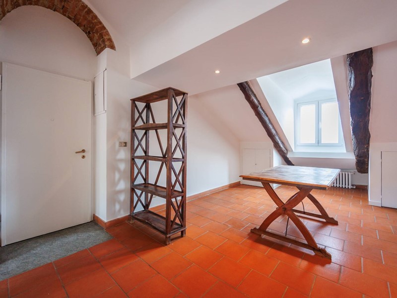 L'immobile, raggiungibile tramite ascensore, è composto da ingresso su ampia zona giorno con doppia esposizione, cucina abitabile arredata, luminosa camera da letto con accesso ad un balconcino fronte Monte dei Cappuccini e interno cortile, lavanderia, bagno con grande box doccia e cantina al piano interrato. L'appartamento si presenta in ottime condizioni, è stato appena tinteggiato completamente (compresi gli infissi) e sono stati appena posati i pavimenti della cucina, del bagno e della camera da letto. La lavatrice è nuova.