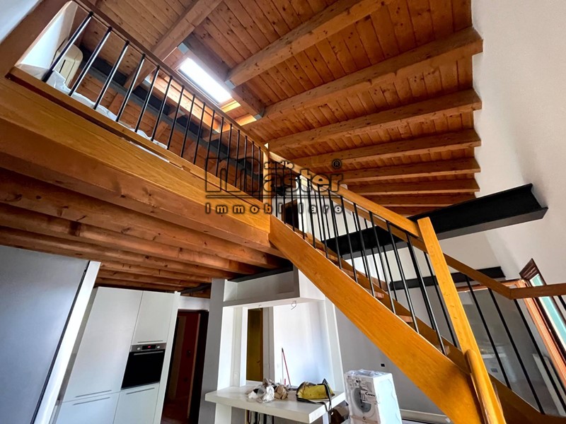 L'appartamento posto al terzo ed ultimo piano con ascensore tutto travato a vista, e' disposto su due livelli con cucina spaziosa con elettrodomestici zona living open space e bagno e al piano superiore camera soppalcata con secondo bagno con doccia maxi.