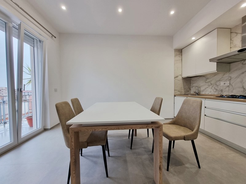 Nella centralissima via Roma, arteria servita da ogni servizio e attività commerciale, comodo anche per la breve distanza dalla stazione ferroviaria proponiamo in locazione un appartamento totalmente ristrutturato e arredato di 70 mq circa posto al 5° ed ultimo piano servito da ascensore cosi composto: ingresso, cucina, salone, camera matrimoniale, cameretta, 2 bagni e due balconi di cui uno fronte strada.