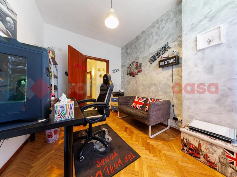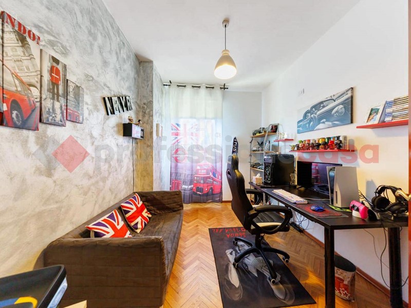 L'appartamento, ristrutturato circa vent'anni fa, si presenta oggi in ottime condizioni manutentive: gli infissi sono in legno, i pavimenti sono in ceramica nella zona giorno e nei servizi, mentre nelle camere troviamo parquet originale, che dona calore e pregio agli ambienti.