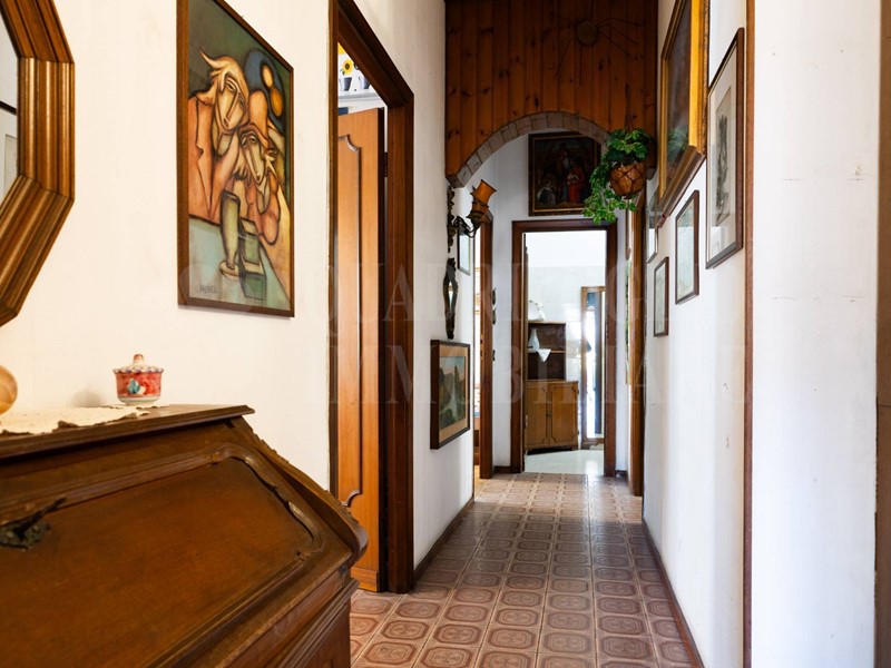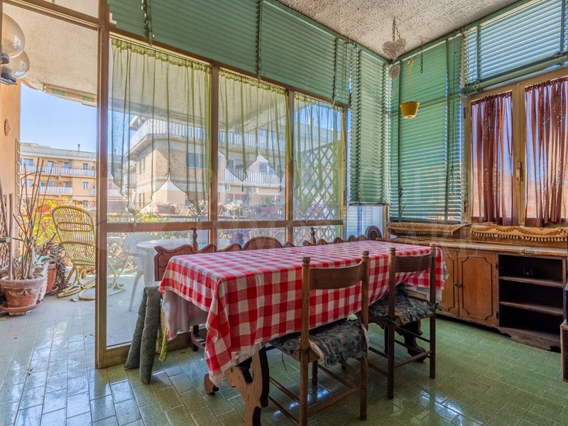 Limmobile si apre su un ampio ingresso che conduce al salone doppio, luminoso e di rappresentanza, con accesso diretto alla veranda e al balcone: spazi perfetti per vivere la casa anche allesterno.