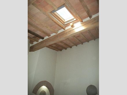 TERRICCIOLA, in centro, proponiamo appartamento ristrutturato sito al piano secondo ed ultimo, avente accesso tramite scala esterna a comune e ultima rampa in proprietà esclusiva composto da: ingresso-sala-angolo cottura, camera matrimoniale, camera singola, bagno, ripostiglio, soffitto a travi e travicelli, tre lucernari motorizzati. Al piano terreno ampio garage/taverna divisa in tre locali, bagno e predisposizione per cucina.