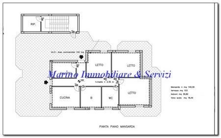 3° piano Mansarda di mq. 140 circa, composto da studio, cucina con ripostiglio e salotto e 3 camere da letto, per la funzionalità dell'appartamento è situato un ripostiglio posto sul vano scala di circa 9,50 mq. ed oltre 140 mq di terrazza e balconi panoramici.-
