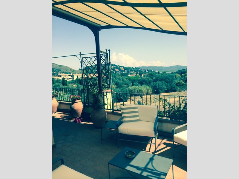 PORTO ERCOLE - IN CONDOMINIO ESCLUSIVO ATTICO con meravigliosa terrazza vista mare. Ingresso,soggiorno,cucina a vista, 2 camere, vano/guardaroba e bagno (ricavabile il 2° w.c.). Perfetto e funzionale con impianto a ga, .climatizzatori, videocitofono.GARAGE e parcheggio. Arredato in stile moderno e ricercato. (Ape Cl.C-ipe 190,3K.m2 an.)