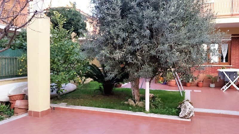 Ladispoli, MARINA DI PALO proponiamo uno splendido appartamento al piano terra con entrata anche indipendente in piccola palazzina ristrutturata di solo due piani a 50 metri dal mare in perfetto stato esposto a sud/ovest, composto da: ingresso, salone, cucina a vista, due camere da letto, bagno con doccia ad idromassaggio, portico con tende da sole ed ampio giardino pavimentato di 260 mq con alberi da frutto come aranci, mandarini, mele, limoni ed ulivi, più ampia cantina accessoriata di bagno, angolo cottura e ripostiglio esterno in legno, termo autonomo.