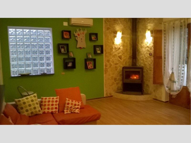 riscaldamento alimentato da termocamino da 32KW con termosifoni in ogni stanza .