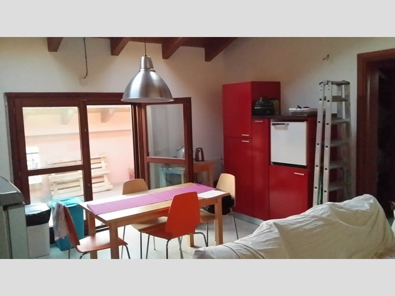 appartamento di mq 70, anno 2005, posto al secondo e ultimo piano di un fienile ristrutturato, sito in Crevalcore, a 2 km dal centro cittadino.Sala abitabile (volendo soppalcabile) con angolo cottura, camera matrimoniale, camera singola, bagno, terrazza a tasca, posto auto condominiale.Tetto con travi a vista ed interamente in legno trattato, infissi e Velux in legno e vetrocamera. Finestre con zanzariere e grate di sicurezza.Il riscaldamento autonomo con sistema di fonte energetica rinnovabile a biomassa. Classe Energetica E. Impianto satellitare. EURO 98.000 NO AGENZIE