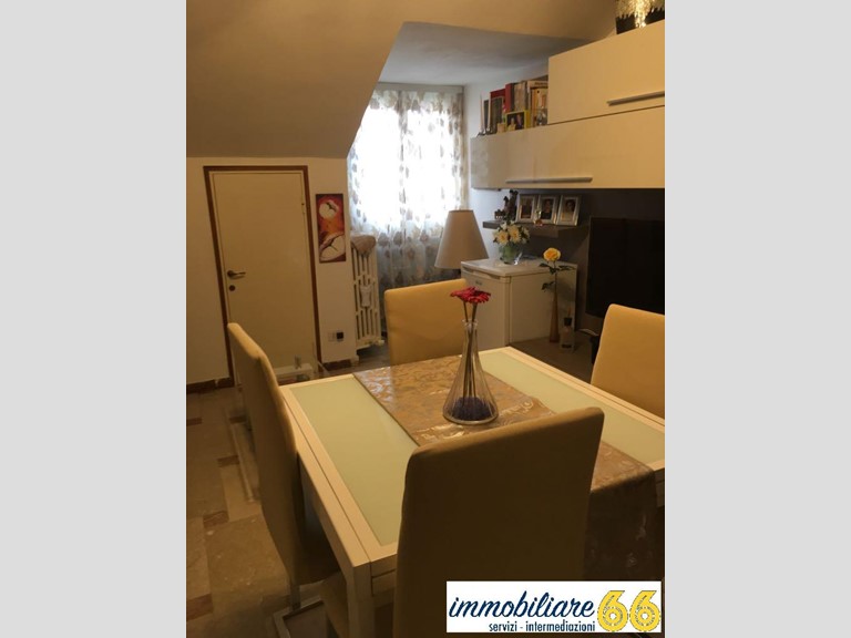 In condominio piano alto e sostanzialmente in ordine, appartamento al piano mansarda con box di proprietà, riscaldamento centralizzato con minimo costo di gestione, senza ascensore;