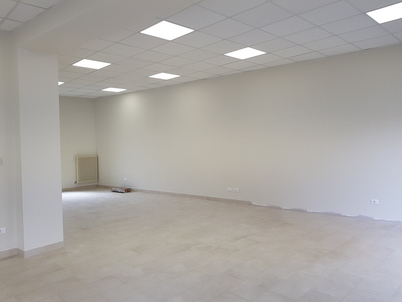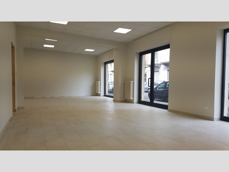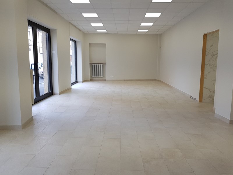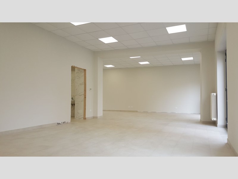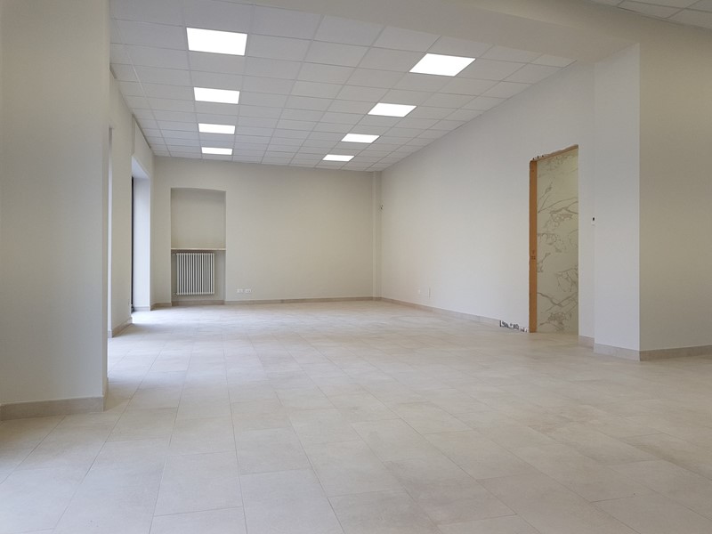 Ingresso dalla vetrina centrale su ampia area illuminata con lampade a LED a luce calda, più altro vano e bagno con antibagno.