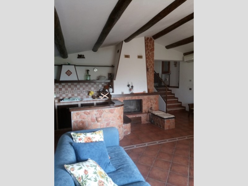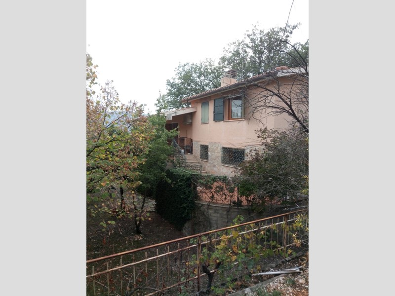 Villetta (150 mq) situata in Via Peschieta (casali di Poggio Nativo), 1km dalla Salaria, costruita metà in pietra disposta su due piani sfalsati più unità immobiliare esterna adibita a garage (34 mq) e terreno di 2000 mq con quercia secolare, alberi di ulivo, da frutto, siepi e diverse piante ornamentali. Tutto completamente recintato con 2 cancelli di ingresso.