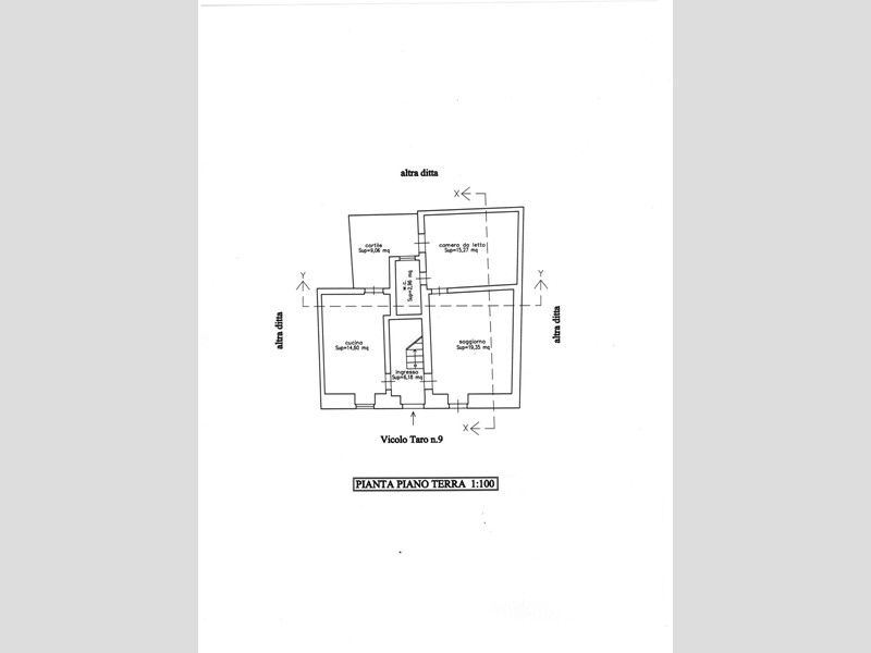 Immobile in buono stato di conservazione di mq. 58,36 utili al piano terra più cortile di mq. 9,06 e di mq. 29,01 al primo piano più 2 terrazze rispettivamente di mq. 12,91 e di mq. 12,00. Ad appena 200 metri dal centro storico facilmente raggiungibile a piedi in 5 minuti. Piano Basso.