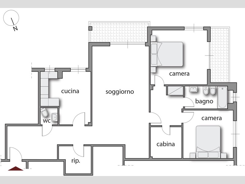 La zona notte è composta da due camere doppie di cui una con balcone con esposizione sud ed ovest, un bagno con vasca, la cabina armadio ed un disimpegno arredabile. Il riscaldamento è centralizzato.