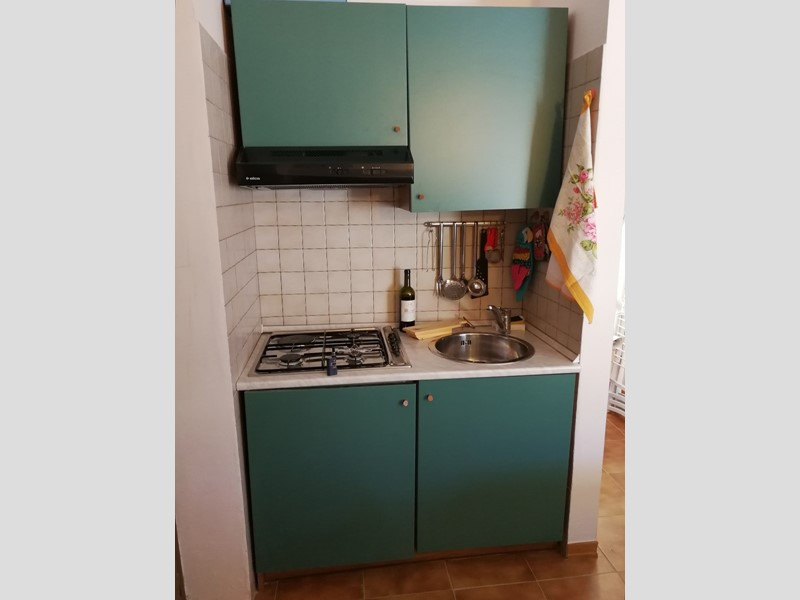 Piano Cottura, Frigo, Boiler elettrico, Caldaia a gas per riscaldamento con radiatori in ghisa, Caminetto angolare.