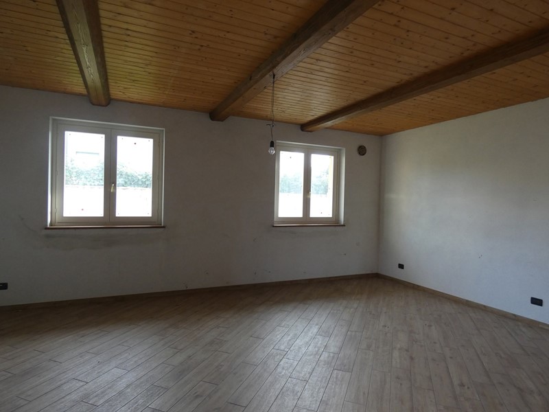 Di recente costruzione, con finiture di pregio, l'immobile e` situato al pian terreno, libero sui 4 lati, ed e` composto da ingresso living sul soggiorno con solaio in legno a vista, cucina con attacchi ribaltabili verso zona living (se si volesse utilizzare lo spazio cucina come studio), una camera doppia e una matrimoniale, quest'ultima servita da ampia cabina armadio, un bagno signorile, un bagno di servizio e lavanderia, ed un ripostiglio, per un totale di 120 metri quadri calpestabili. Esternamente troviamo un giardino privato di circa 70 mq, compreso di fontanella esterna, dotato di passaggio coperto che conduce alla zona autorimesse, dove troviamo il doppio box auto di pertinenza di circa 35-40 mq, piastrellato e coibentato.