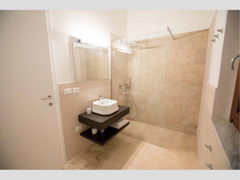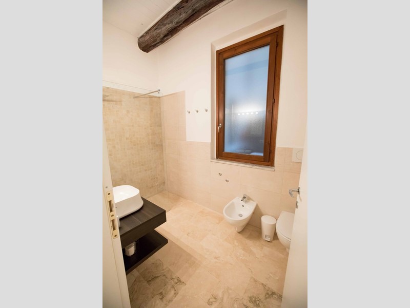 Il pavimento di tutta la casa è rivestito di un bellissimo travertino dai toni caldi e accoglienti.
