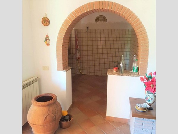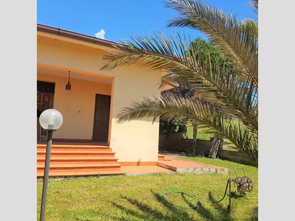 Abbiamo il piacere di proporVi una splendida villa Unifamiliare di ampia metratura su unico livello edificata nella metà degli anni '90, costruita come uso seconda casa, vissuta solo nei week end e praticamente nuova. La casa è circondata da un terreno di proprietà di circa 6800 mq con circa 30 piante di ulivo, alberi da frutto e piante ornamentali. La villa internamente è composta da un salone di circa 50 Mq con camino, cucina a vista, ingresso, camera con armadio a muro con bagno privato, camera matrimoniale con armadio a muro sei ante, cameretta e secondo bagno con doccia. Ampio portico e sottotetto da rifinire internamente. Porticato di circa 50 Mq in legno di castagno invecchiato, casetta con forno a legno, barbecue in muratura e piano di lavoro, garage di 50 mq circa e una caratteristica cantina. La casa si presenta in ottimo stato e rifinitissima: porta blindata, infissi in legno con doppi vetri, persiane blindate, pavimenti in cotto toscano, impianto di allarme, impianto di illuminazione esterno, cancello automatico, due pozzi presenti nel terreno, barbecue, forno a legno e armadi a muro. La richiesta per questa proposta immobiliare è di € 299.000, 00 una soluzione abitativa ideale per chi desidera vivere una casa in totale indipendenza, nella natura ma nello stesso tempo non isolata, sono presenti altre ville nelle vicinanze.