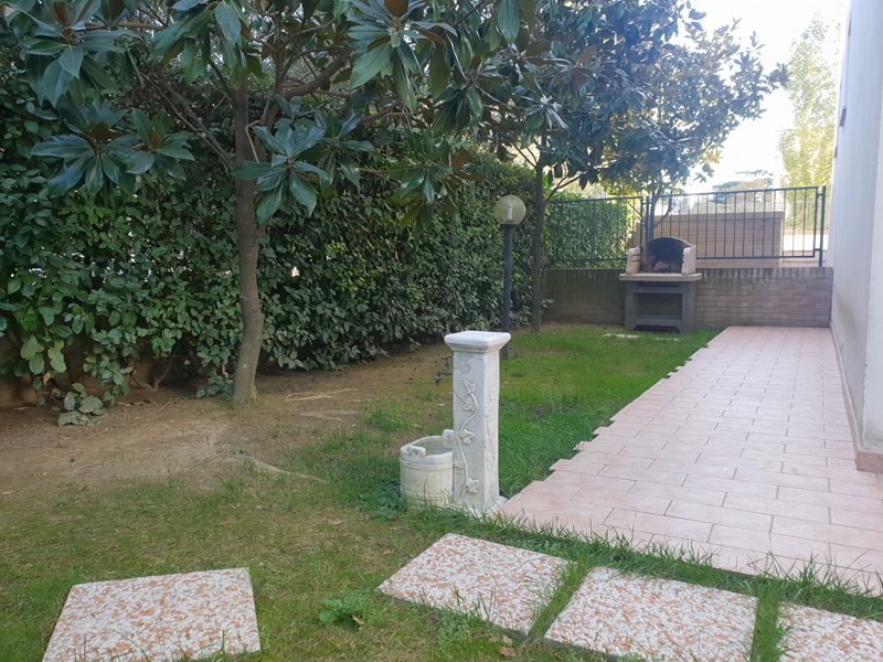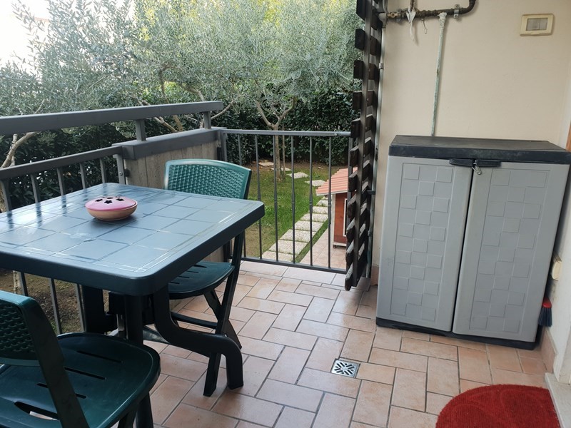 Privato vende appartamento bilocale al piano terra rialzato di circa 48 metri quadrati costituito da soggiorno cucina, camera matrimoniale grande e bagno finestrato. Dal soggiorno si accede a grande balcone, dove é possibile anche posizionare un tavolo per poter mangiare, dal quale si accede al giardino di circa 70 mq che copre due lati della casa. Il giardino é parzialmente piastrellato e vi sono 4 alberi di olivo con fontanella per acqua e barbecue.