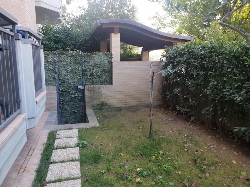 Al giardino é possibile accedervi anche mediante cancellino privato dall' ingresso condominiale. Completa la proprietà una cantina grande di 8 mq al piano seminiterrato del condominio. Il condominio, realizzato nel 2007, é dotato di ascensore che serve tutti i piani, compreso il seminterrato, e di serbatoio per acqua piovana da utilizzare per le acque scure. Riscaldamento radiante a pavimento centralizzato ma con contatore autonomo.