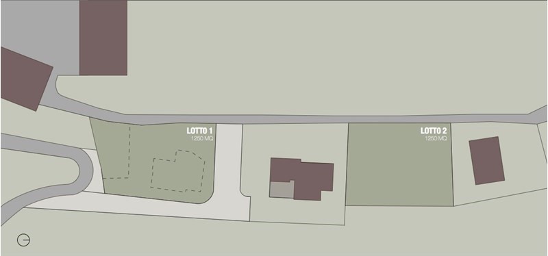 NB:I lotti a disposizione della vendita sono 2, ciascuno di 1250 mq, indicati in planimetria con LOTTO 1 e LOTTO 2.
