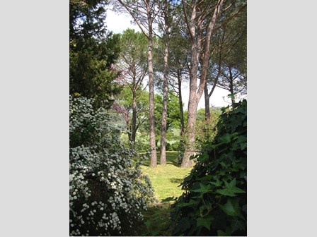 Interamente circondata da 3000 metri di giardino, pineta e uliveto, la villa è immersa in un’oasi di pace e tranquillità in un’area sottoposta a stretti vincoli paesaggistici.