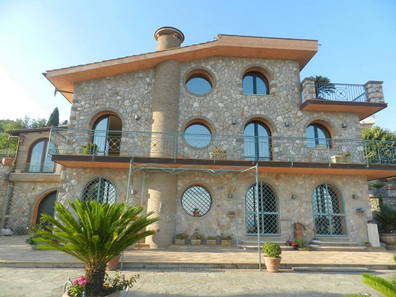 a formia in zona collinare panoramicissima proponiamo in vendita villa esclusiva panoramicissima e rifinitissima su tre livelli di oltre 350 mq coperti utili per complessivi 13 vani e giardino di 1000 mq . la struttura completamente e finemente arredata e' composta al piano terra da ampio salone triplo , cucina di circa 25 mq e ampio servizio , al primo piano salone di rappresentanza con terrazzo a livello , studio , soggiorno e servizio mentre al secondo livello tre ampie camere e camera da bagno . la villa rifinitissima e' termocondizionata in tutti gli ambienti ed e' immersa in un parco a verde di oltre 1000 mq con ampio garage e accorsatissima cantina.