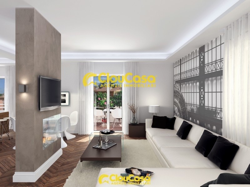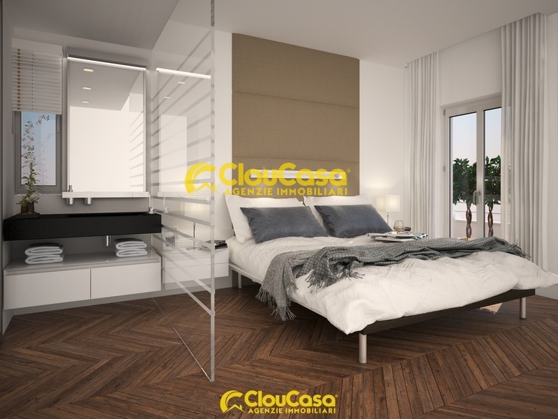APARTMENT - Lazio - Aprilia (LT) – via Trilussa, Montarelli. In a quiet and peaceful area, just a few hundred meters from the main public bus stop and Aprilia train station; It is an excellent solution for those who want to get away from the chaos of the city, but that remains with everything at your fingertips. ClouCasa offers for sale newly built penthouse, located on the second floor of a minicondominium, usable area of sqm. 85, perimeter terrace of 65 square meters. Apartment consists of a direct entrance hall, kitchen, a double bedroom with bathroom for exclusive use, hallway leading to two bedrooms and a second bathroom. There are also 2 enclosed parking spaces on the ground floor. Following planimetry and 3D render.!