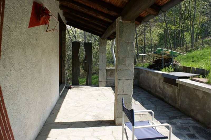 Completamente ristrutturata in legno e pietra di Luserna (tetto nuovo) e unica nel suo genere per la presenza di opere artistiche posizionate all'esterno.