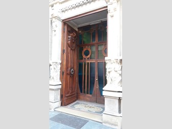 L'abitazione, libera, di circa 235 mq., è in perfetto stile Liberty floreale e possiede una suggestiva sala d'ingresso, è composta inoltre da un ampio salone, un' ampia cucina abitabile, una sala da pranzo, tre vaste camere da letto, doppi servizi, vari vani accessori e tre balconate.
