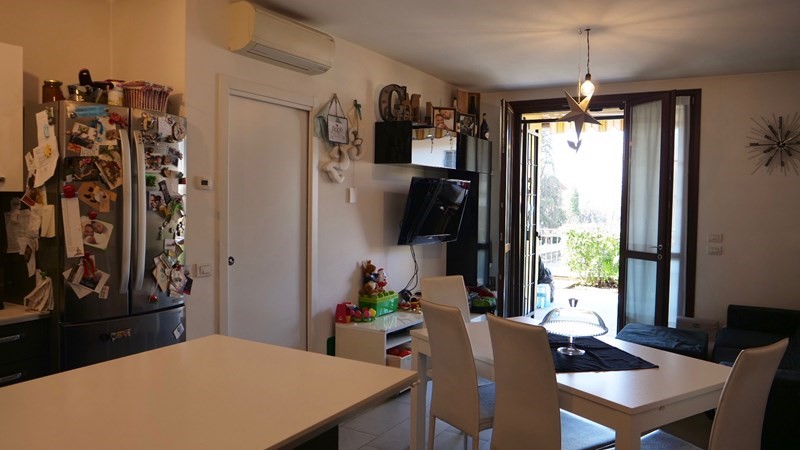 In palazzina di recente costruzione, realizzata in zona residenziale comoda a tutti i servizi, PRIVATO propone appartamento al piano terra con ingresso indipendente. L'immobile è composto da ingresso su soggiorno con angolo cottura, disimpegno, camera matrimoniale, bagno, camera singola, ampio garage (di 35 mq) per due auto più zona cantina, portico e giardino. Nell'appartamento sono state installate inferriate apribili, zanzariere a scomparsa tenda parasole elettrificata, inoltre è dotato riscaldamento a pavimento (che garantisce basse spese di gestione ed un grande comfort) oltre all'impianto di condizionamento con pompa di calore.