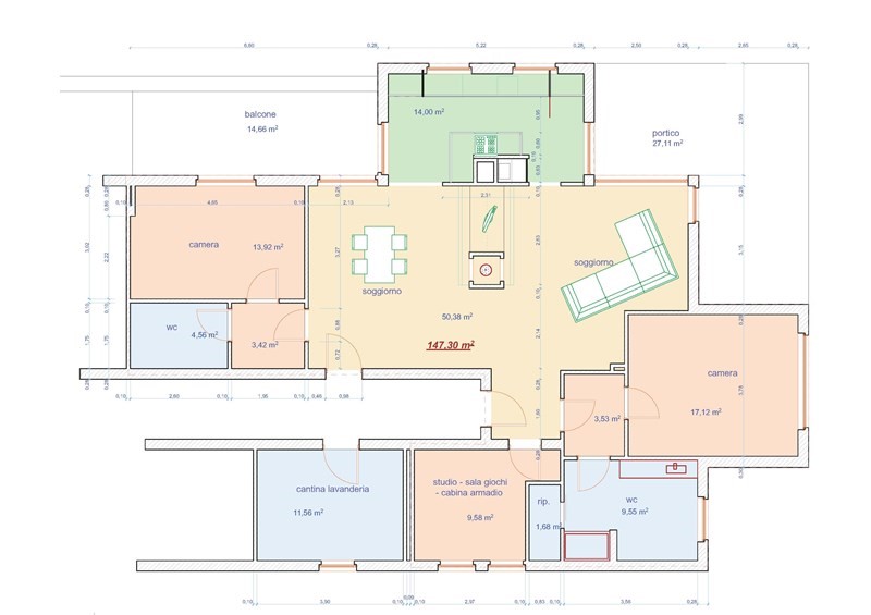 Cucina: aperta su soggiorno e sala con possibilità di chiu