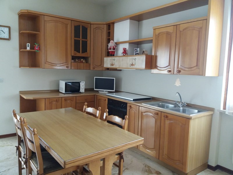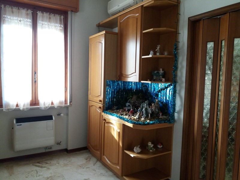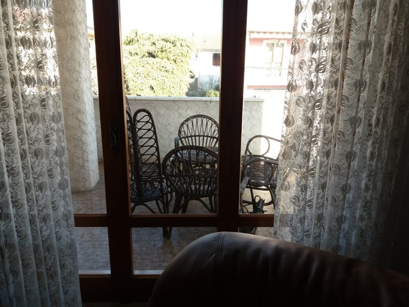 Al piano rialzato: sala pranzo con balcone, salotto con ampio terrazzo, bagno, cucinino, 3 camere da letto di cui una con balcone.