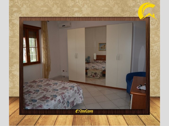 La villa ha una copertura a terrazzo di 150 mq ed è su due livelli: piano seminterrato, deposito di 120 mq, e piano terra rialzato. L' appartamento è di 120 mq composto da : salone, cucina, 3 camere, 2 bagni e un balcone.