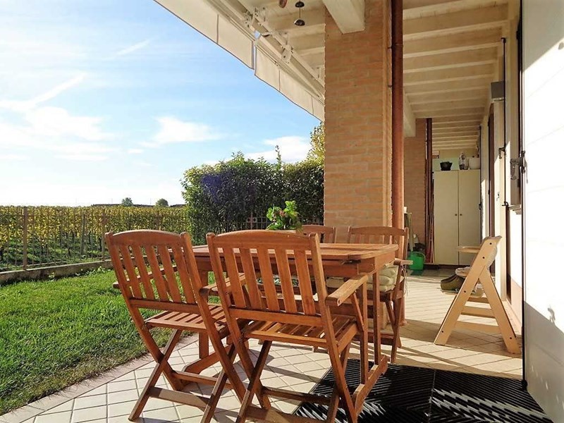 Appartamento ampio e di recentissima costruzione con finiture di alto pregio immerso in zona vigneti a pochi passi dal lago. Attraverso un ingresso indipendente si accede ad uno dei due giardini con portici e travi in legno sbiancato. Ampia zona giorno, due camere da letto e bagno, al piano inferiore altra camera, lavanderia (con riscaldamento a pavimento) cantina e garage singolo.
