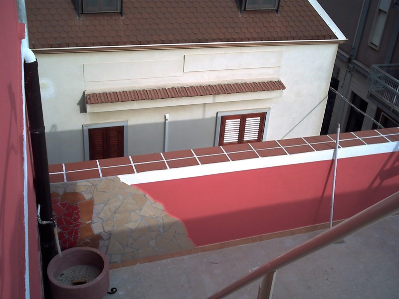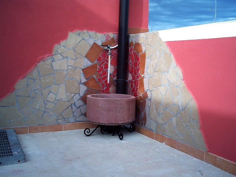 Terrazzo di 45 mq totalmente ristrutturato con fontana e tenda parasole.