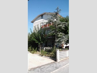 In palazzina bifamiliare appartamento ammobiliato al primo piano con soffitta e doppio garage al pianoterra. Ingresso cucina con camino e retrocucina con balconi, salotto, disimpegno, due camere matrimoniali e una cameretta, un bagno. Giardino privato.