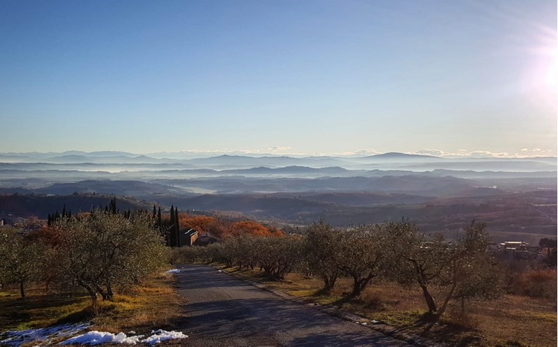 Tipico casale Toscano da ristrutturare.Bellissima posizione panoramica dominante con vista laghi al confine con la Val D'Orcia. Ampio giardino 3.ooo Mq.