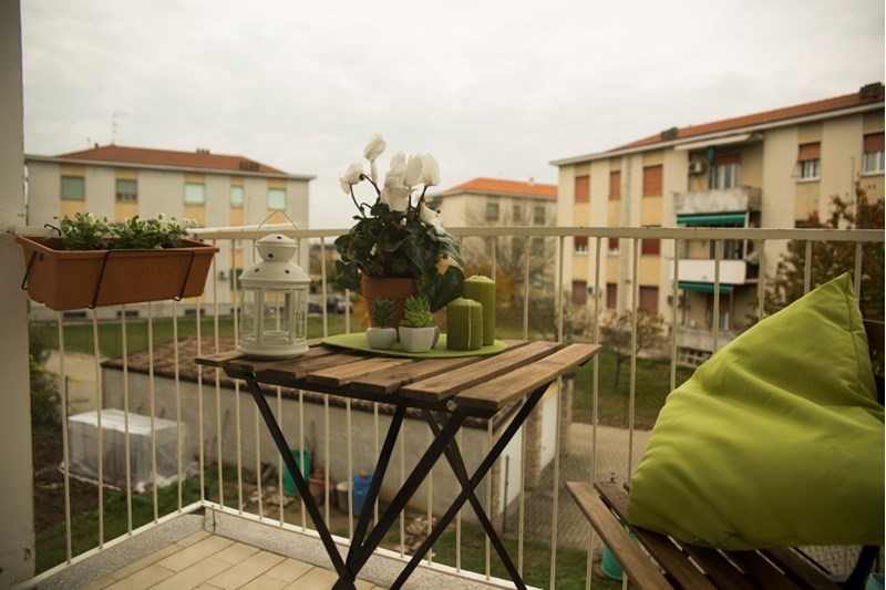 L’appartamento è composto da ingresso, soggiorno, cucina, un bagno, due camere da letto, un ripostiglio e due balconi per un totale di circa 90 mq.