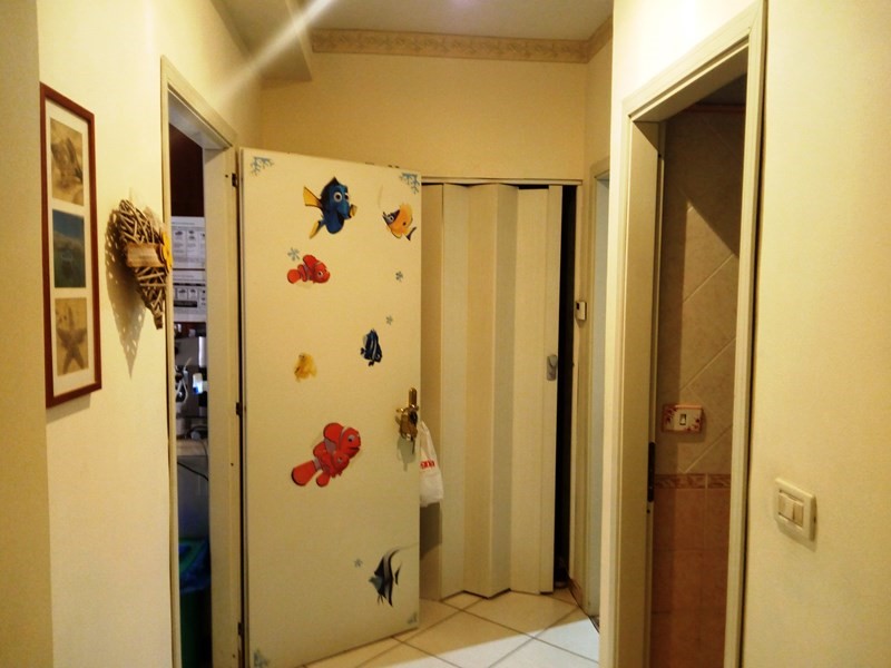 Appartamento posto al piano primo, vani 3 più accessori, suddiviso: ingresso soggiorno cucina mq 32 con due aperture, disimpegno, corridoio, altre due camere da letto più lavanderia e servizio; balconi interni ed esterni, immobile ben tenuto e con riscaldamento autonomo. Ottima esposizione e garage mq 36 più posto auto.