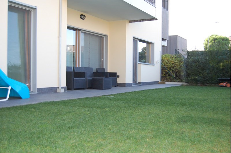 In contesto recente e moderno, situato in una delle zone più belle di Olgiate Comasco, a due passi dal centro e dai principali servizi, esclusivo appartamento posto al piano terra edificato con le più moderne tecniche di progettazione e dalla finiture signorili composto da: ingresso, soggiorno ampio con due porte finestre scorrevoli che danno accesso al giardino di mq 250, cucina abitabile, Wc - lavanderia, disimpegno zona notte con camera matrimoniale e bagno privato, altre due camere e terzo servizio, due porticati. Completano la proprietà una cantina e un autorimessa doppia in larghezza € 26.000,00. Riscaldamento a pavimento con suddivisione zona giorno/notte, tapparelle in alluminio motorizzate, domotica, antifurto, impianto fotovoltaico, ventilazione meccanica, pannelli solari e predisposizione aria condizionata.