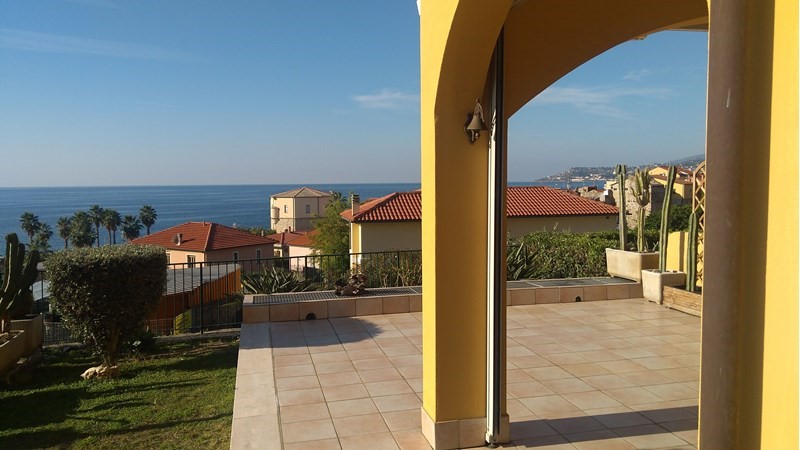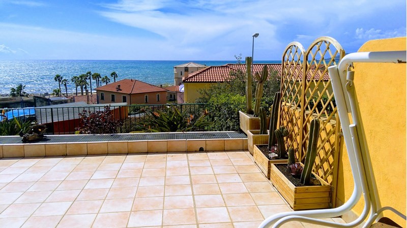 Bilocale con grande vista mare,50m da pista ciclabile,100m.dal mare e centro paese,veranda due terrazze, giardino privato, camino, box doppio