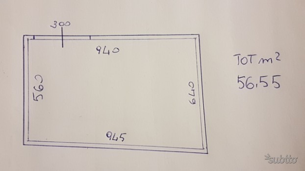 Il locale è un grande ambiente unico senza pilastri ed è rettangolare: mt 9,40 x 6,00 ca.