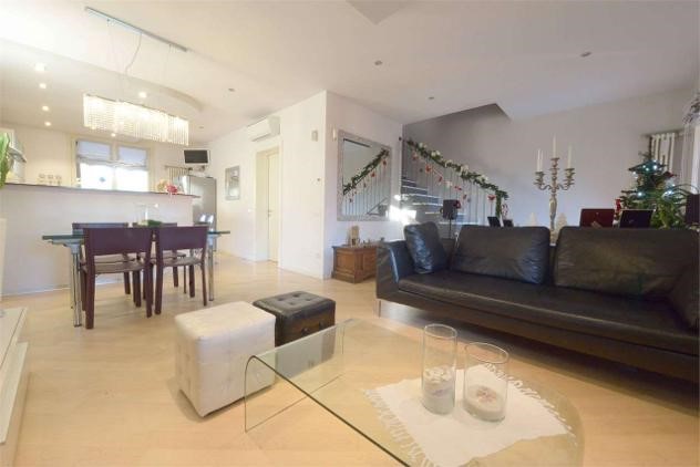 Stupenda villa abbinata, molto curata, disposta su 3 piani: Al piano terra ingresso, soggiorno con cucina aperta, 3 camere da letto con cabina armadio, , 3 bagni, 2 logge, studio, ripostiglio. Cantina, garage. Giardino di proprietà e piscina esterna . Finiture prestigiose. Ottimo contesto abitativo.