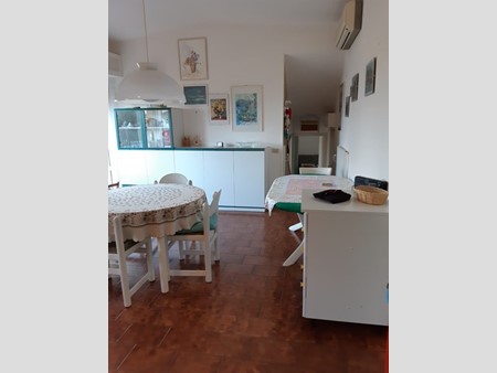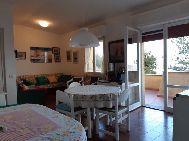L'immobile ha un ingresso indipendente e fa parte di un complesso di altre villette molto ben curato, tranquillo e immerso nel verde. E' composto da soggiorno ampio con zona pranzo dal quale si accede al bel terrazzo vivibile con vista sul mare a 180 gradi, cucinotto con accesso sul retro ad una piccola corte privata con barbecue e doccia esterna di servizio, 2 camere entrambe con vista, di cui una con secondo terrazzo, bagno recentemente ristrutturato. Molto luminoso: ogni stanza e' dotata di finestra ampia e/o portafinestra.