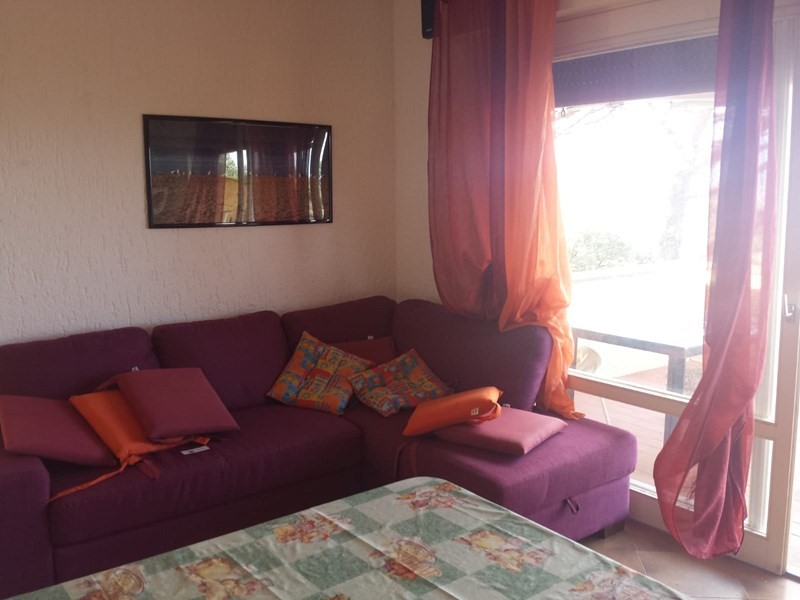 Appartamento in complesso di villette a schiera con ingresso indipendente, posizione angolare, scalinata di accesso privata. Bellissima posizione panoramica. L'immobile e' composto da angolo cottura con soggiorno luminosissimo, 2 camere , bagno, ampio terrazzo panoramico con tenda da sole, posto auto di proprieta’. Ampi spazi esterni per poter soggiornare all'aperto in totale privacy. Piccola corte alla quale si accede tramite scala esterna che collega anche la stanza ad uso cantina/lavanderia. Termosingolo a metano.