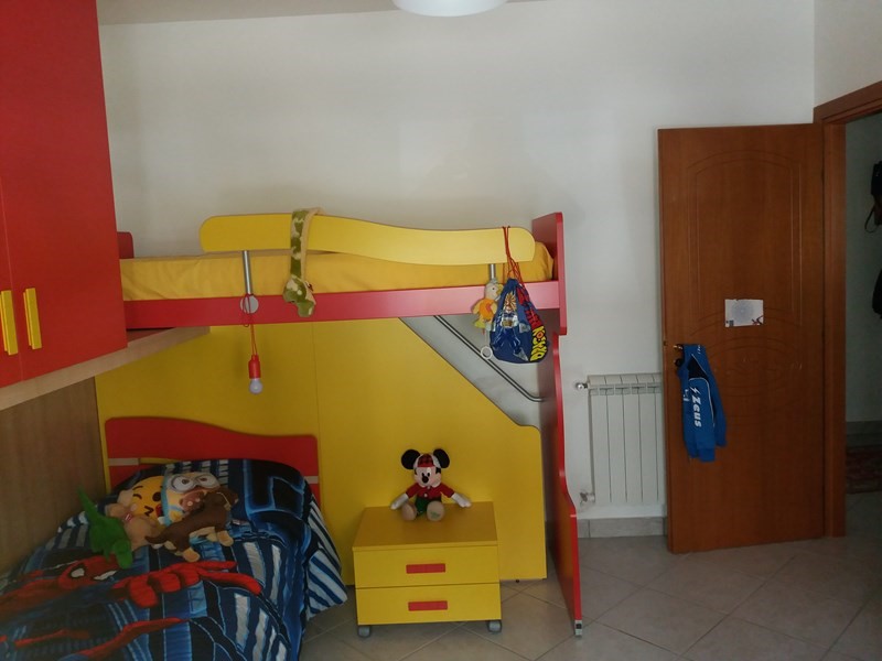 Composto da corridoio, soggiorno/cucina, tre camere, bagno con vasca ad angolo, doppio servizio con doccia, ripostiglio e piccola verandina in alluminio preverniciato.